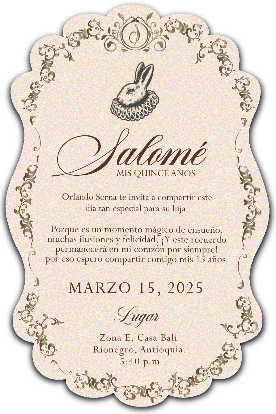 Ven a celebrar con nosotros un momento mágico, único e inolvidable: los 15 años de Salomé. Esta celebración solo estará completa con tu presencia